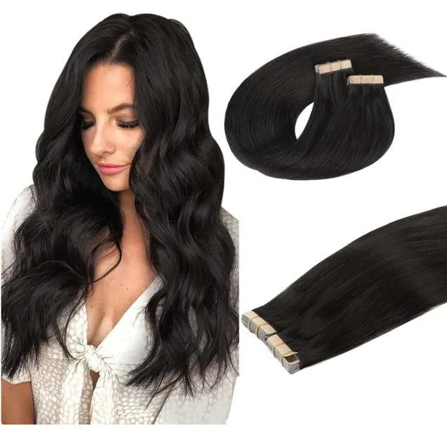 DOORES Taśma do przedłużania włosów, naturalna czarna 16 cali 40 sztuk