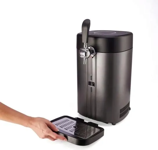 Dozownik zaskoczy Cię niezwykle łatwą obsługą. Wystarczy usytuować 5l beczkę w urządzeniu i podłączyć ją do kranu. Następnie należy zamknąć pokrywę urządzenia. Beczkę można schłodzić przed użyciem. Tacka ociekowa jest wyjmowana, co ułatwia czyszczenie po użyciu.
