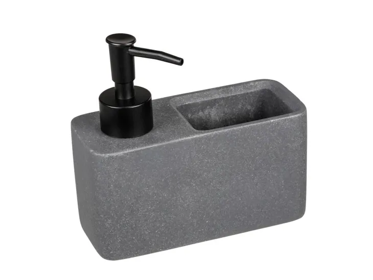 - Dozownik na płyn do naczyń z miejscem na gąbkę. Gąbka do mycia naczyń znajdzie swoje stałe miejsce do suszenia.