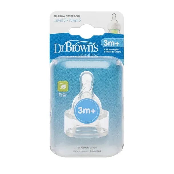 Smoczek Dr Brown′s Poziom 2 zapewnia spójny, naturalny, powolny przepływ. Kształtem przypomina pierś matki. Wykonany z najwyższej jakości super miękkiego silikonu. W połączeniu z systemem antykolkowym powoduje bezciśnieniowe karmienie, które zmniejsza występowanie kolek, odbijania oraz gazów. Smoczek pasuje do wszystkich wąskich butelek Dr Brown′s. W opakowaniu znajdują się 2 smoczki. Można myć w zmywarce na górnej półce. Przeznaczony dla dzieci od 3-6 miesięcy.
