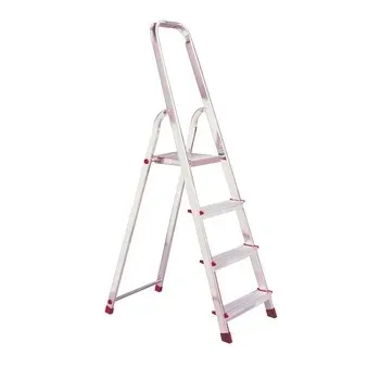 Drabina aluminiowa wolnostojaca, do prac wewnatrz pomieszczeń.Posiada pałąk bezpieczeństwa i stopki antypoślizgowe
