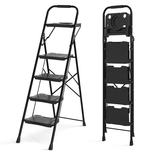 4-stopniowa drabina z półką na narzędzia i antypoślizgowymi stopniami