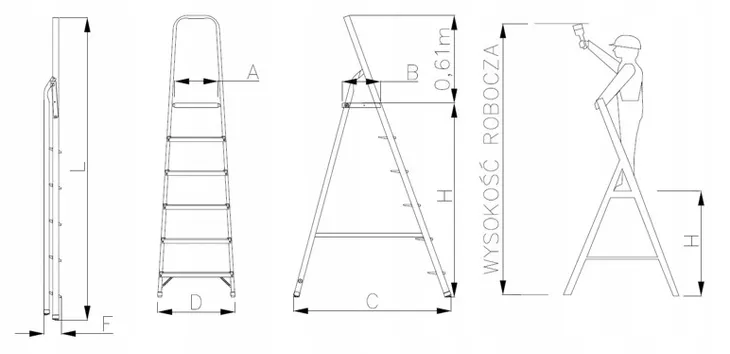 - Max wysokość stania na drabinie w pozycji użytkowej - 1,07