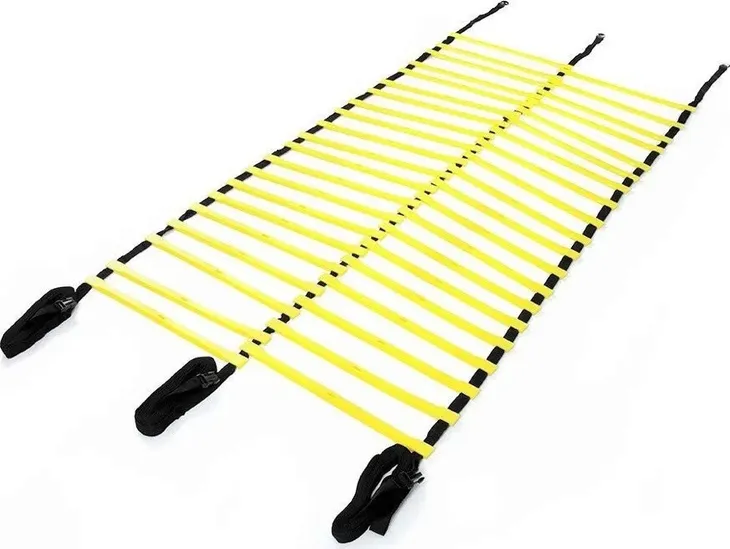 - Drabinka treningowa może być stosowana zarówno podczas treningu na dworze, ale też dzięki powłoce antypoślizgowej dobrze sprawdzi się na hali.