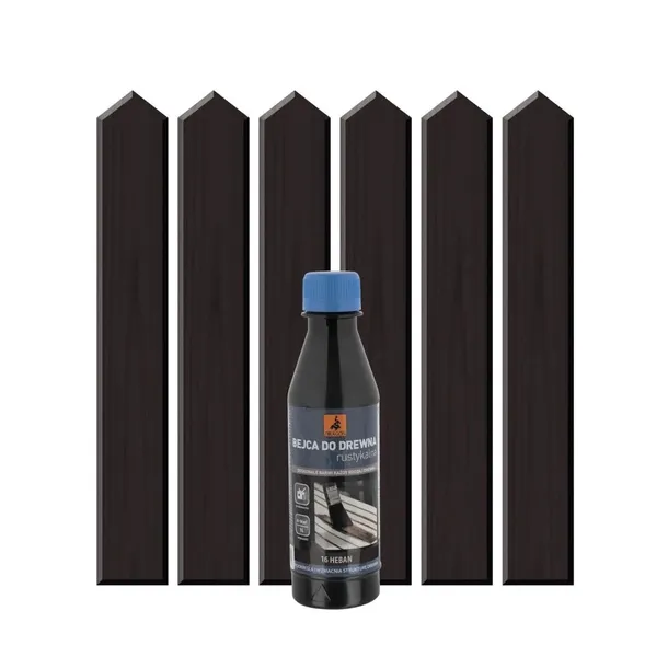 9. Unikać kontaktu ze skórą – trwale barwi. Do barwienia dużych powierzchni należy zawsze używać bejcy z tej samej partii produkcyjnej. Przedstawiony na opakowaniu kolor może nieznacznie różnić się od uzyskanego efektu ze względu na stosowaną technikę drukarską oraz rodzaj drewna, na które będzie nanoszona bejca.