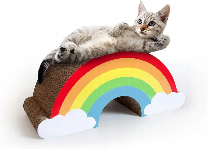 Kolorowy drapak tekturowy do kota w kształcie tęczy to funkcjonalne i estetyczne rozwiązanie, które łączy zabawę, drapanie oraz miejsce do odpoczynku. Produkt został zaprojektowany z myślą o naturalnych instynktach kota – pozwala ostrzyć pazury, rozciągać ciało oraz wygodnie się wylegiwać.
