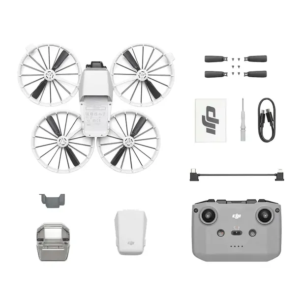 W komplecie znajdziesz drona DJI Flip, niezbędne akcesoria, takie jak akumulator, przewody i para zapasowych śmigieł, a także aparaturę DJI RC-N3. Dzięki niej możesz precyzyjnie kontrolować drona, korzystając z podłączonego smartfona. Ten zestaw zapewnia wszystko, czego potrzebujesz, aby tworzyć spektakularne ujęcia z lotu ptaka!