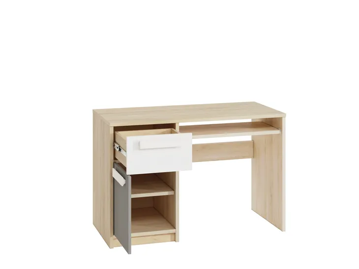 Biurko z 1 szufladą i 1 drzwiczkami.