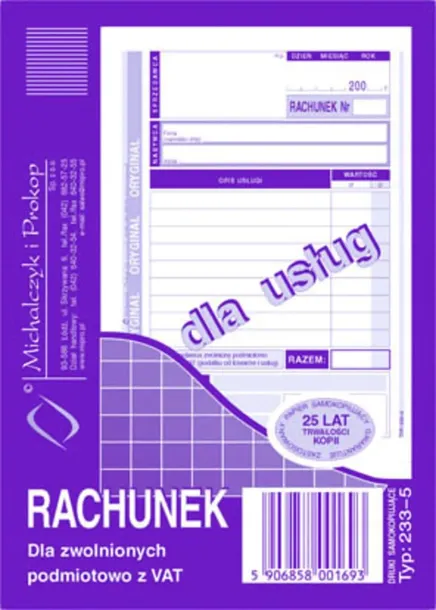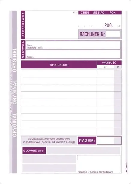 RACHUNEK DLA ZWOLNIONYCH Z VAT DLA USŁUG 80K DRUK