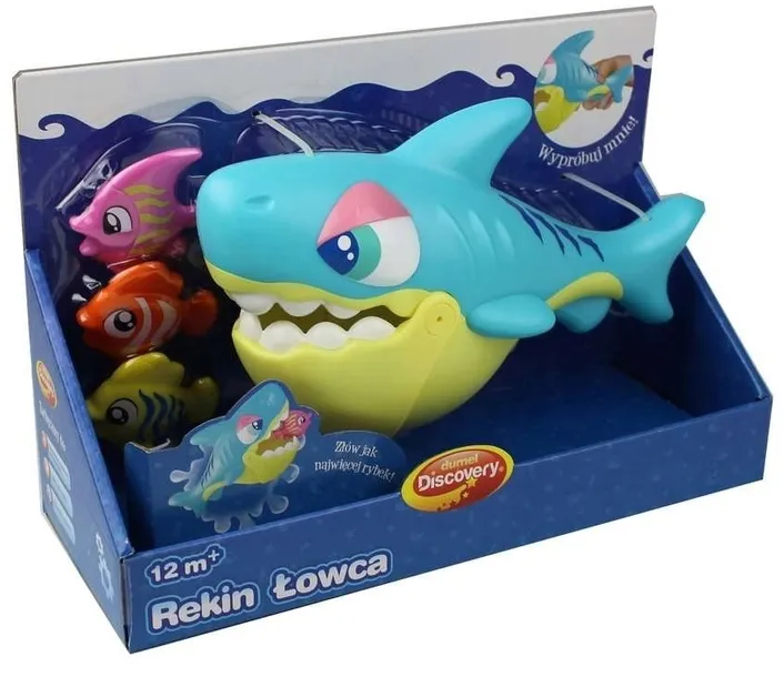 Nadciąga głodny rekin, który poszukuje zdobyczy! Przeżyj razem z nim ekscytującą przygodę, zmieniając kąpiel w super zabawę! Rozrzuć rybki w wodzie i za pomocą Rekina Łowcy z ruchomą szczęką, złap je wszystkie.