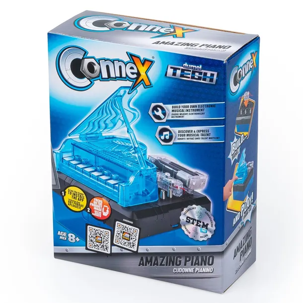 W zestawie znajdziesz różne elementy konstrukcyjne, potrzebne do stworzenia pianina. Po zainstalowaniu w nim baterii (niezawarte w zestawie), stanie się ono prawdziwym instrumentem, na którym będzie można wygrywać różne melodie.