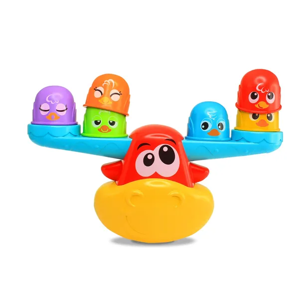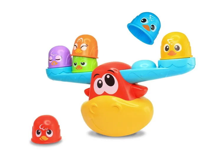 Hej maluchu, złap balans, ćwicząc równowagę z przezabawnym łosiem! Na jego imponującym porożu znajdzie się miejsce dla wszystkich kolorowych ptaszków, dołączonych do zestawu. Odpowiednio rozmieść te kolorowe kubeczki na obu stronach poroża, aby znajdowały się one względem siebie w równowadze. Jeśli umieścisz zbyt wiele kubeczków na jednej stronie, łoś przechyli się w tym kierunku. Uważaj, jeśli obarczysz go zbyt dużym ciężarem i przechyli się zbyt mocno w jedną stronę, zrzuci kubeczki! To jeszcze nie wszystko! Kubeczkowe ptaszki posiadają na głowie dziurki, dzięki czemu sprawdzą się też do zabawy w piasku czy podczas kąpieli.