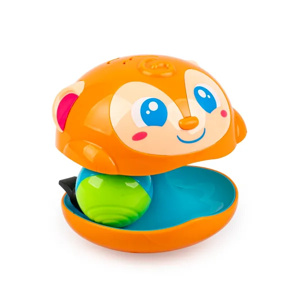 Zabawny zwierzak chybocze się na swej małpiej podstawce, wydając przy tym dźwięk dzwoneczka! W środku zabawki znajduje się dwukolorowa piłeczka, która także wiruje dookoła, razem z małpką. Zakręć zabawką, słuchaj i obserwuj, aby odkrywać zależności przyczynowo - skutkowe, bawiąc się przy tym w najlepsze.