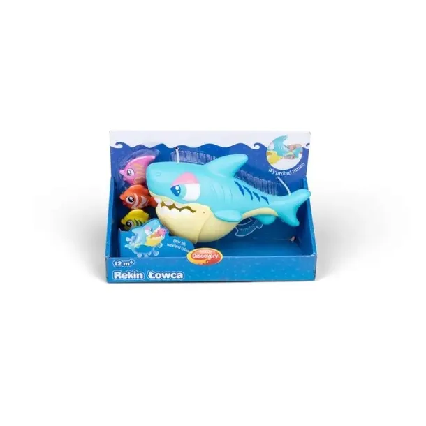 Nadciąga głodny rekin, który poszukuje zdobyczy! Przeżyj razem z nim ekscytującą przygodę, zmieniając kąpiel w super zabawę! Rozrzuć rybki w wodzie i za pomocą Rekina Łowcy z ruchomą szczęką, złap je wszystkie.