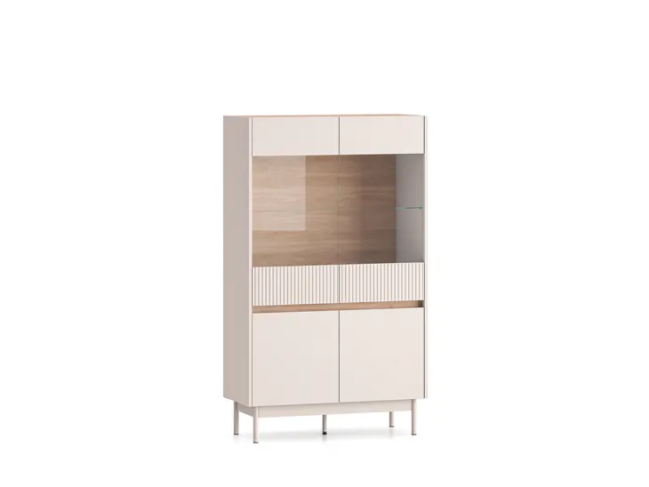 Witryna Dunea 03 to mebel, dzięki któremu przechowasz i wyeksponujesz swoje ulubione przedmioty. Mebel podzielony jest na dwie zamknięte części. Dolna to miejsce niedostępne dla oczu Twoich gości. Schowasz w nim obrusy czy ręczniki. Górna część to przestrzeń podzielona szklana półką tworzącą dwie szerokie wnęki. Dzięki przeszklonym drzwiczkom wyeksponujesz ulubione, porcelanowe filiżanki czy piękną, stylowa zastawę. Wybierz witrynę Dunea i zachowaj porządek w swoim wnętrzu.
