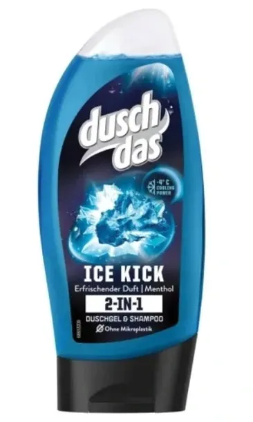 Duschdas Ice Kick to żel pod prysznic i szampon w jednym, stworzony z myślą o mężczyznach poszukujących intensywnego orzeźwienia i dawki energii podczas codziennej pielęgnacji.