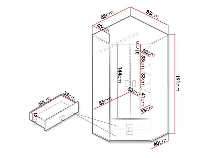 duża SZAFA narożna Index GARDEROBA z szufladami