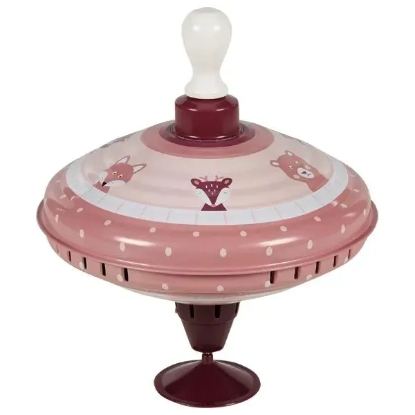 Duży metalowy bączek do kręcenia to tradycyjna zabawka Tutaj w nowej odsłonie Lifestyle z motywem leśnych zwierzątek: liska, misia i jelonka. W odróżnieniu od tradycyjnych bąków ten bączek ma na spodzie podstawkę wykonana z gumy. Bąk zapakowany w eleganckie kartonowe pudełko, idealny do wręczenia na prezent.