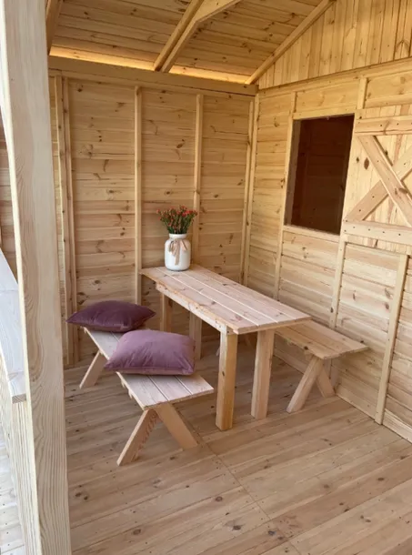 - Domek wykonany z drewna sosnowego i świerkowego 3x4