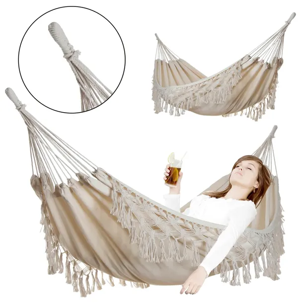 DUŻY DWUOSOBOWY WYTRZYMAŁY HAMAK OGRODOWY HUŚTAWKA MIDAS 150x200 XXL ECRU