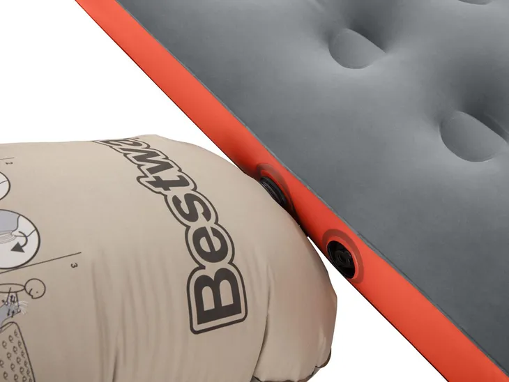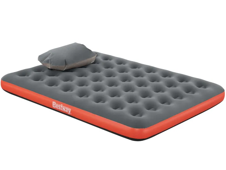 - Materac kempingowy to idealne rozwiązanie dla osób, które cenią sobie komfortowy wypoczynek w trakcie wypadów na łono natury. Ten dwuosobowy materac o wymiarach 203 x 152 x 22 cm zapewnia wygodne miejsce do spania dla dwóch osób. Wykonany z wytrzymałego materiału winylowego, z welurową powierzchnią do spania, zapewniającą przyjemny dotyk.Innowacyjny system pompowania AirCinch ™ umożliwia szybkie i łatwe napełnienie materaca powietrzem za pomocą poduszki – wystarczy 12 nacisków dłońmi. Materac został zaprojektowany z myślą o wygodzie użytkownika, dlatego zestaw zawiera poduszkę 2w1 o szerokości 22 cm oraz wytrzymałą łatkę naprawczą.Dzięki konstrukcji opartej na stelażu coil-beam, materac utrzymuje swoją formę nawet podczas obciążenia do 300 kg. Dodatkowo, zawór szybkiego spuszczania powietrza z blokadą ułatwia szybkie opróżnienie materaca. Całość jest łatwa w utrzymaniu, a po złożeniu zajmuje niewiele miejsca, co sprawia, że jest idealny zarówno do domu, jak i pod namiot. Teraz możesz cieszyć się relaksem na łonie natury bez konieczności rezygnowania z wygody.