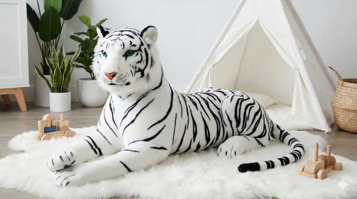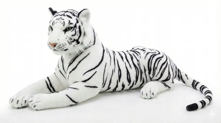 Poznaj imponującego, pluszowego białego tygrysa o długości 85 cm. +ogon 50cm.To nie jest zwykła maskotka. To wyrazisty element wystroju i wierny towarzysz na lata. Przyciąga wzrok od pierwszej chwili – kontrastowe czarne pasy, głębokie zielone oczy i dopracowane detale sprawiają, że wygląda niemal jak żywy.