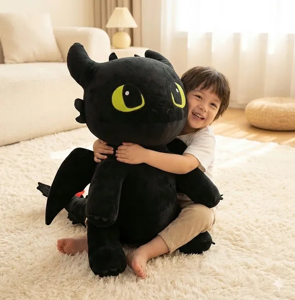Szukasz prezentu, który zrobi piorunujące wrażenie? Oto gigantyczny, czarny smok, który zachwyci każdego miłośnika fantastycznych stworzeń. Ta maskotka to nie tylko zwykła zabawka, to prawdziwy towarzysz przygód o imponujących rozmiarach.