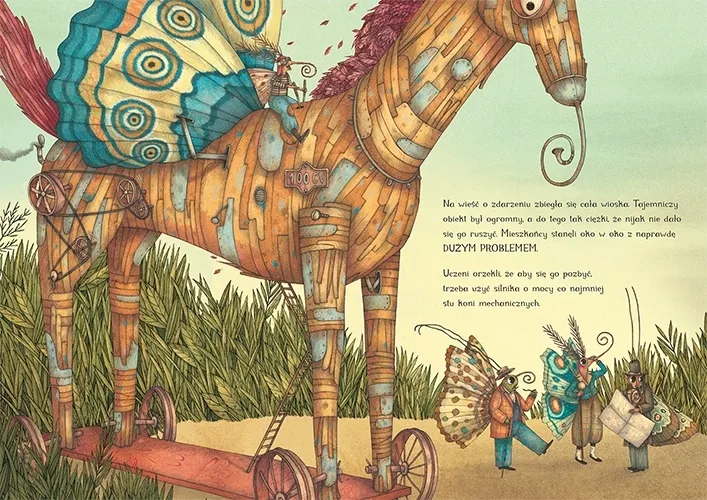 Pewnego ranka w krainie motyli z nieba spada dziwna rzecz. Skrzydlaci mieszkańcy łąki badają tajemniczy obiekt. Dorośli dochodzą do wniosku, że jest to ogromny problem, którego należy się pozbyć. Gdy tak debatują, jakaś mała dziewczynka dotyka dziwnego przedmiotu i oznajmia: „Mmm... Smakuje jak miód!”. Po chwili z wielkiego problemu zostaną tylko okruchy... A wszystko dzięki dzieciom! Książka uzmysławia, że brak uprzedzeń i ciekawość świata bardzo pomagają w rozwiązywaniu życiowych problemów. Lektura wzbogacająca czytelników w każdym wieku.