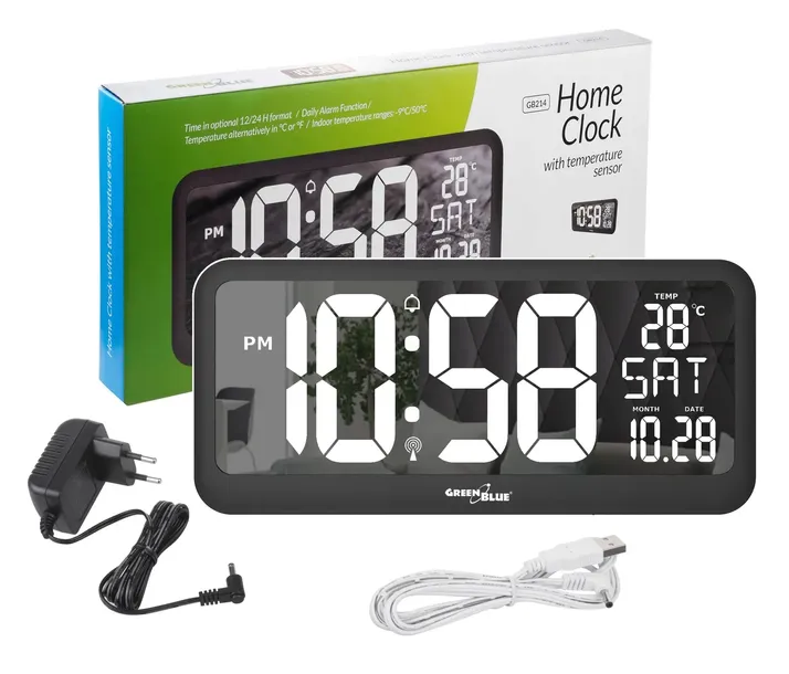 ZEGAR ŚCIENNY LCD BARDZO DUŻY GREENBLUE, TEMPERATURA, DATA, GB214