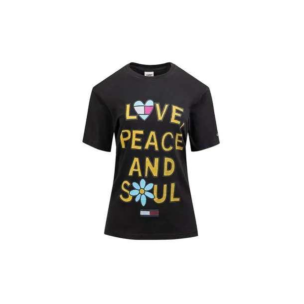Koszulka damska marki Tommy Hilfiger z kolekcji Tommy Jeans.Marka: Tommy HilfigerModel: DW0DW11291-BDSKolor: czarnyDekolt: okrągłyKrój: regularSkład: 100% bawełnaWymiary:Biust: XS(49cm), S(51cm), M(53cm), L(55cm), XL(59cm)Pas: XS(47cm), S(49cm), M(51cm), L(53cm), XL(56cm)Biodra: XS(48cm), S(50cm), M(52cm), L(55cm), XL(57cm)Długość rękawa: XS(19cm), S(20cm), M(20cm), L(21cm), XL(23cm)Długość całkowita: XS(61cm), S(63cm), M(65cm), L(67cm), XL(67cm) *Wymiary mierzone na płasko. Dopuszcza się różnice w podanych wymiarach: +/- 2cm.
