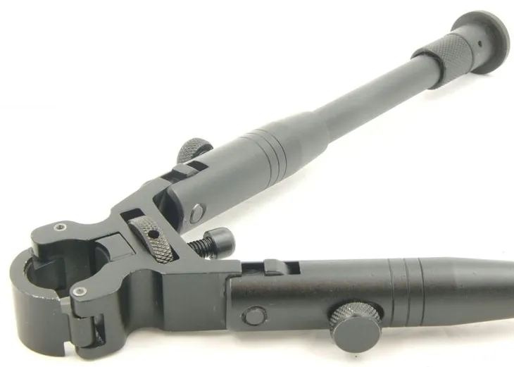 Uniwersalny bipod renomowanej amerykańskiej firmy Leapers model TL-BP08S (Dragon Claw). Wykonany z najlepszej jakości lotniczych stopów aluminium. Wyposażony w gumowe podnóżki. Możliwość dopasowania do lufy (rozwarcie regulowane od 11 do 19 mm), nóżki sprężynowe. Bipod posiada klips umożliwiający błyskawiczny montaż i demnotaż na lufie. Złożenie jego również nie zajmnie więcej jak kilka sekund.