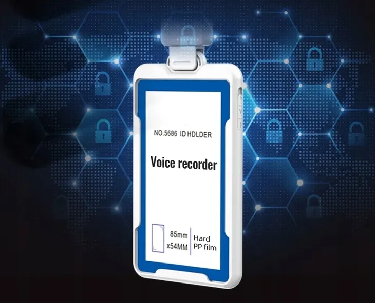 Zainstaluj dowolny wydrukowany identyfikator o rozmiarach 85x54mm i ciesz się dyskrecją używania szpiegowskiego dyktafonu!