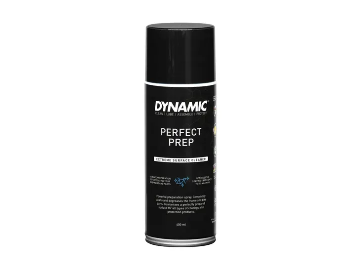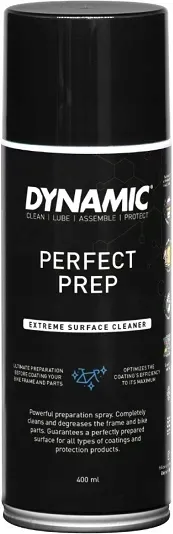Dynamic PerfectPrep Surface Cleaner to środek do czyszczenia i odtłuszczania powierzchni w pojemności 400 ml, który usuwa pozostałości tłuszczu, smaru i wcześniejszych preparatów, dzięki czemu idealnie przygotowuje ramę oraz komponenty pod wosk, powłokę ochronną lub inne środki pielęgnacyjne — dla lepszej przyczepności i trwalszego efektu.