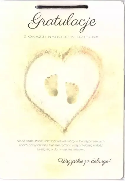 Dyplom okolicznościowy do zawieszenia na sznurku. Z nadrukowanymi życzeniami z jednej strony i miejscem na własny wpis z drugiej.