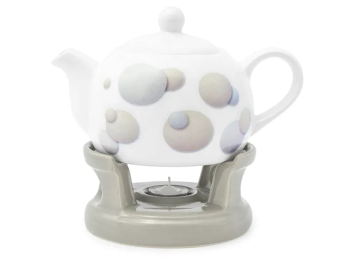 Komplet dzbanka wraz z podgrzewaczem został wykonany z wysokiej jakości ceramiki szkliwionej. Dzięki świeczce typu tealight którą umieszczamy w podgrzewaczu, dzbanek przez dłuższy czas utrzymuje temperaturę napoju. Zestaw idealnie pasuje do każdego rodzaju wystroju. Przydatny w każdym domu oraz łatwy w utrzymaniu czystości - można myć w zmywarce. Komplet występuje w wielu ciekawych i eleganckich wzorach. Całość zapakowana jest w ładne pudełko - świetny pomysł na prezent.
