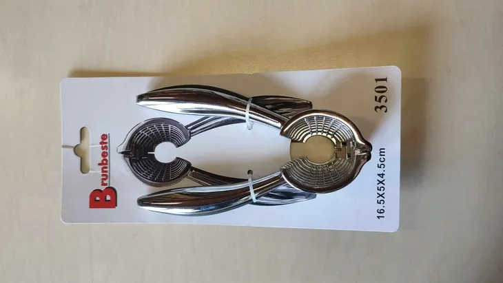 Nasz Dziadek do orzechów to idealne narzędzie do wydobywania smaku z różnorodnych orzechów. Wykonany z wysokiej jakości stopu cynku, zapewnia trwałość i niezawodność użytkowania. Dzięki ergonomicznemu kształtowi, urządzenie dopasowuje się do rozmiarów łupiny, co ułatwia jego użycie. Antypoślizgowe uchwyty wykonane z silikonu w kolorze czarnym gwarantują pewny chwyt, dzięki czemu korzystanie z niego jest komfortowe i nie wymaga dużej siły. Dziadek do orzechów jest nie tylko funkcjonalny, ale również łatwy do czyszczenia, co sprawia, że idealnie sprawdzi się w każdej kuchni. Jego kompaktowe wymiary 16,6 x 5 x 4,5 cm sprawiają, że można go przechowywać w szufladzie lub na blacie bez zajmowania dużej ilości miejsca. Wybierz nasz Dziadek do orzechów i ciesz się prostotą oraz efektywnością w przygotowywaniu przekąsek z orzechów.