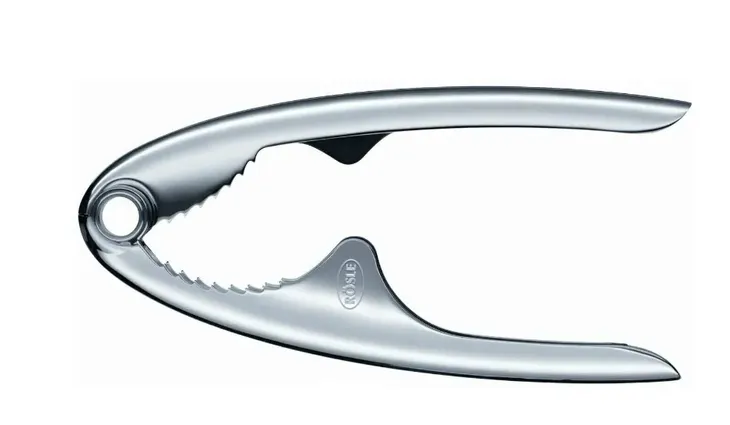 Informacje o produkcie "Dziadek do orzechów ze stali nierdzewnej" Zęby ustawione pod kątem skierowane do przodu mocno chwytają orzecha, zapobiegając ich ześlizgiwaniu się. Nacisk na łupinę orzecha wywierają wyłącznie zęby, dzięki czemu skorupa może zostać rozłupana bez uszkodzenia rdzenia.