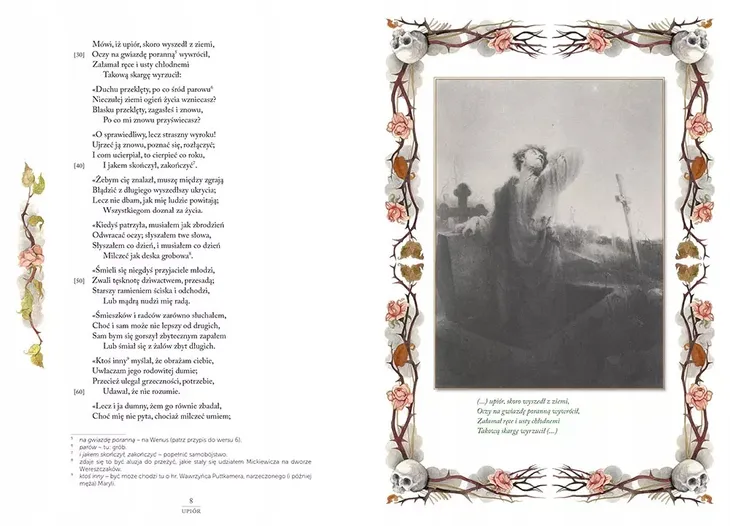 Dziady cz. II w serii „Kolorowa Klasyka” to najpiękniejsze kolorowe wydanie tego dramatu na rynku! Książka zawiera wspaniałe, barwne ilustracje, jej atutem jest duża, ułatwiająca szybkie czytanie czcionka. Edycja na szlachetnym papierze, bardzo trwała i estetyczna. Zapada zmrok. W przycmentarnej kaplicy, wokół trumny, zbiera się grupa ludzi. Gaszą świece, a w oknach wieszają całuny. Wszyscy zamierają w milczeniu. Guślarz rozpoczyna obrzęd przywoływania dusz zmarłych... Kto przybędzie z zaświatów? Czy przyjmie pomoc żywych? Jakich rad udzieli tym, którzy jeszcze mogą zmienić swoje życie? Sięgnij po najnowsze wydanie II części Dziadów Adama Mickiewicza i zanurz się w niezwykły świat tajemnic, duchów i upiorów. Wydanie w serii „Kolorowa Klasyka” zachwyca piękną oprawą graficzną oraz klimatycznymi, XIX-wiecznymi ilustracjami.