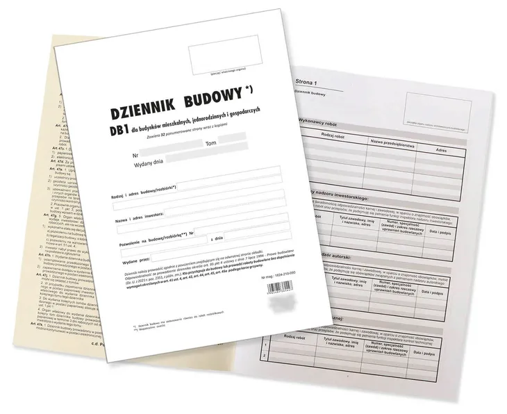 - Dziennik Budowy DB1: dla budynków mieszkalnych, jednorodzinnych i gospodarczych.