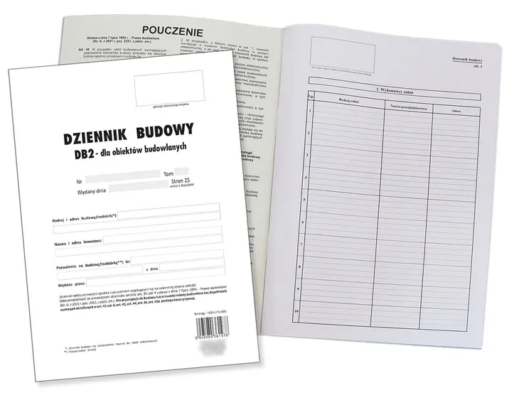 - Dziennik Budowy DB2: dla obiektów budowlanych.