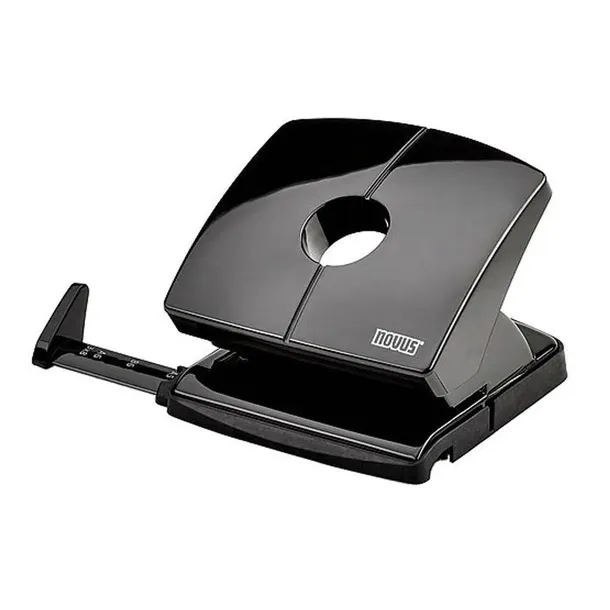 Najwyższej jakości dziurkacz biurowy Novus B220. Wysuwany ogranicznik formatu z czytelnym wskaźnikiem rozmiaru. Antypoślizgowa podstawa, którą można do połowy wysunąć dla opróżnienia i łatwo zamknąć. Wykonany z metalu w obudowie z tworzywa sztucznego. Sprawdzone przez TV Nord zgodnie z wymogami ustawy o bezpieczeństwie urządzeń i produktów. Struktura plastra miodu w podstawie zapewnia stabilność. Kolor czarny.