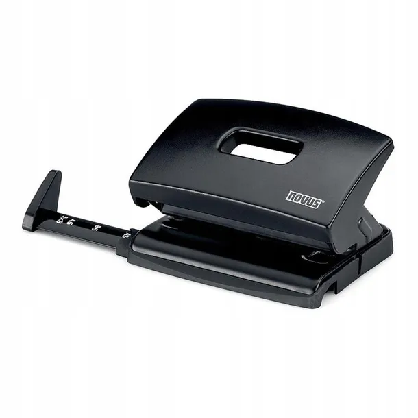 Kompaktowy i lekki dziurkacz biurowy Novus C216. Wysuwany ogranicznik formatu z czytelnym wskaźnikiem rozmiaru. Antypoślizgowa podstawa, którą można do połowy wysunąć dla opróżnienia i łatwo zamknąć. Wykonany z metalu w obudowie z tworzywa sztucznego. Kolor czarny.