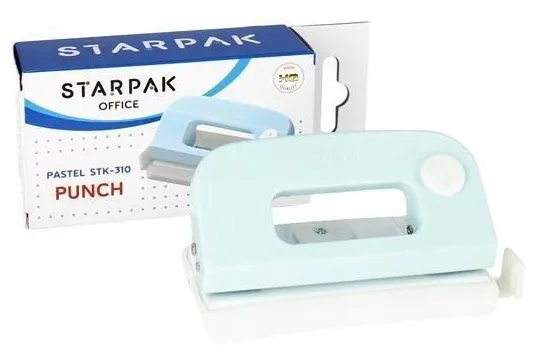 Praktyczny Dziurkacz idealny do domu i małego biura marki STARPAK. Nowoczesny wygląd przyciąga uwagę. Antypoślizgowa podstawa, otwierana do połowy zapewnia wygodę podczas opróżniania urządzenia Mały dziurkacz posiada odstęp między dziurkami 80 mm a średnicę otworów 5,5 mm. Potrafi przedziurkować 10 kartek na raz o gramaturze papieru 80 g/m2.
