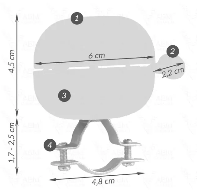 - Metalowy uchwyt z dwoma śrubkami, dzięki którym można dopasować dzwonek do większości kierownic.