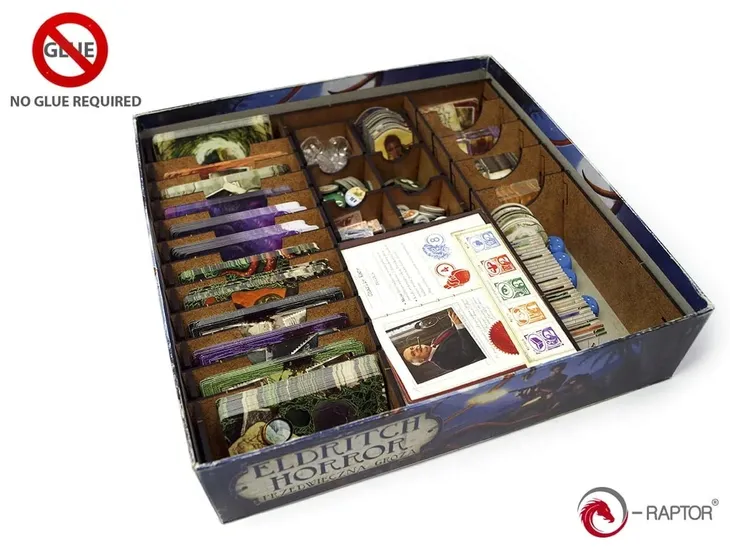 e-Raptor Insert do gry Eldritch Horror jest akcesorium przeznaczonym do jak najlepszego wykorzystania przestrzeni gry planszowej oraz poprawy samej rozgrywki.