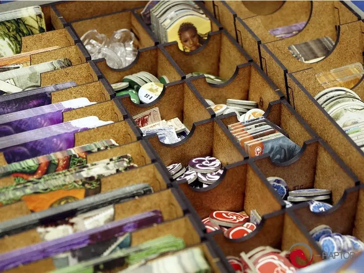 - Nasz insert posiada wyjmowane pudełko na żetony które możesz z łatwością wyjąć ze środka a następnie umieścić w wygodnym dla graczy miejscu.