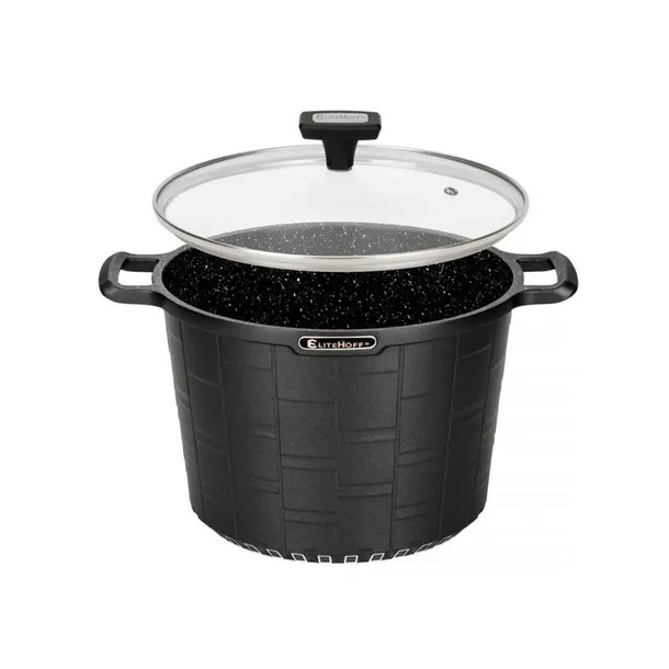- Właściwości nieprzywierające: Wewnętrzna część garnka jest pokryta dodatkową warstwą nieprzywierającą, co ułatwia smażenie i gotowanie z mniejszą ilością tłuszczu oraz sprawia, że potrawy nie przywierają do powierzchni.