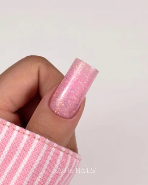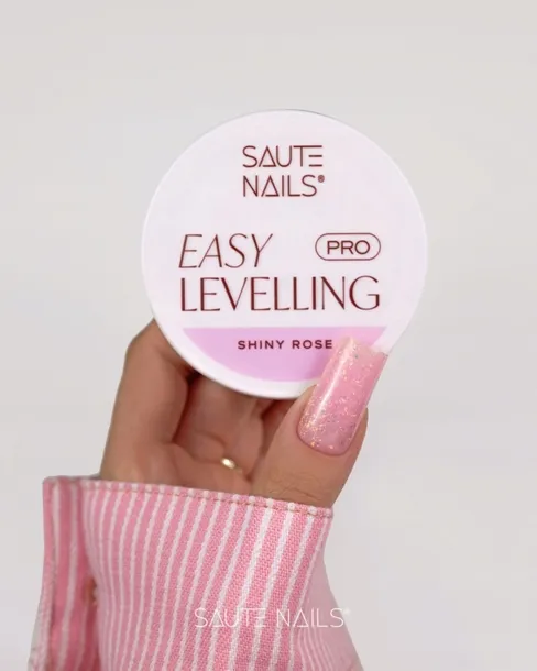 Easy Levelling PRO Shiny Rose to pół-transparentny odcień różu, wzbogacony o opalizujące, nieregularne drobiny, które nadają stylizacji trójwymiarowe wykończenie.