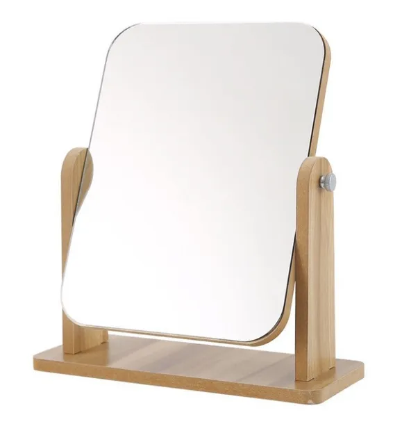 Lusterko kosmetyczne stojące ruchome w drewnianej oprawie - prostokątne