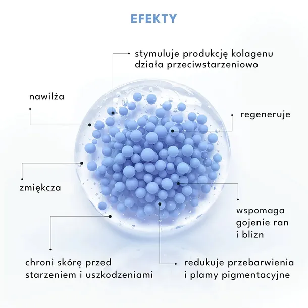 Oparta na innowacyjnej formule emulsja o subtelnym, jasno-błękitnym kolorze zawdzięcza swój odcień naturalnej obecności GHK-Cu – tripeptydu miedziowego. To właśnie ten składnik, zamknięty w mikrokapsułkach, uwalnia się podczas aplikacji na skórze, zapewniając maksymalną świeżość i skuteczność działania.